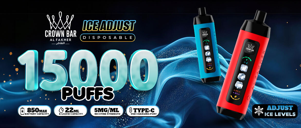 The Al Fakher Crown Bar Ice Adjust Disposable 15000 Puffs vape is crafted for extended use and premium consistency. Designed for convenience and power, this long-lasting disposable vape delivers up to 15,000 puffs, making it ideal for a long-lasting vaping experience without frequent replacements. Pre-filled with high-quality e-liquid and featuring a high nicotine strength, it provides a smooth and steady draw from start to finish. These are some of the best key features of the Crown Bar vape: