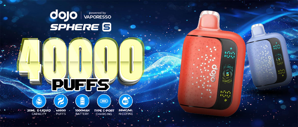 Presenting the Vaporesso Dojo Sphere S Disposable (40,000 Puffs) vape, which is a long-lasting disposable vape designed for convenience and performance. Built with a 20mL pre-filled e-liquid reservoir and a powerful 1000mAh rechargeable battery, this high-performance vape device delivers approximately 40,000 puffs from a single unit — ideal for extended use without frequent replacements. The Dojo vape has many special features, and these are: