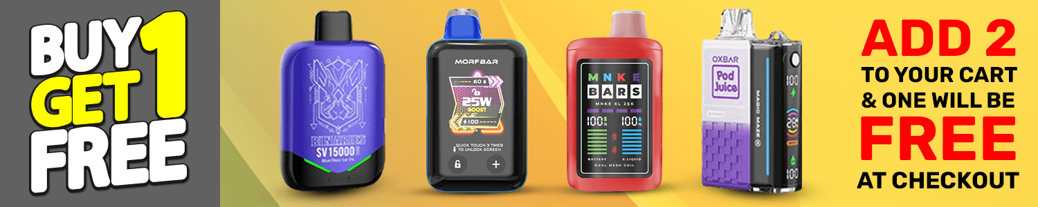 Looking for the best BOGO online sale? Welcome to our exclusive Vape BOGO sale offers section, where you can grab incredible Buy One Get One Free deals on high-quality disposable vapes, vape juices, and vape kits.